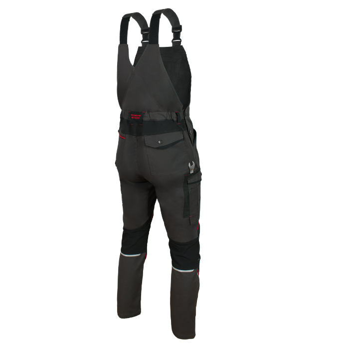 - 2 džepa koljena s otvorom na dnu za jastučiće za koljena i zatvaranje čičkom. Džepovi su ojačani poliesterskom Oxford 600D tkaninom, koju karakterizira visoka izdržljivost, otpornost na abraziju i istezanje, kao i otpornost na vodu